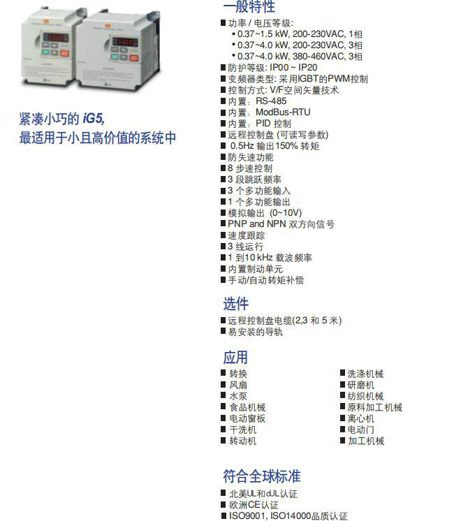 ? 多種控制模式,V/f、無速度傳感器矢量控制。